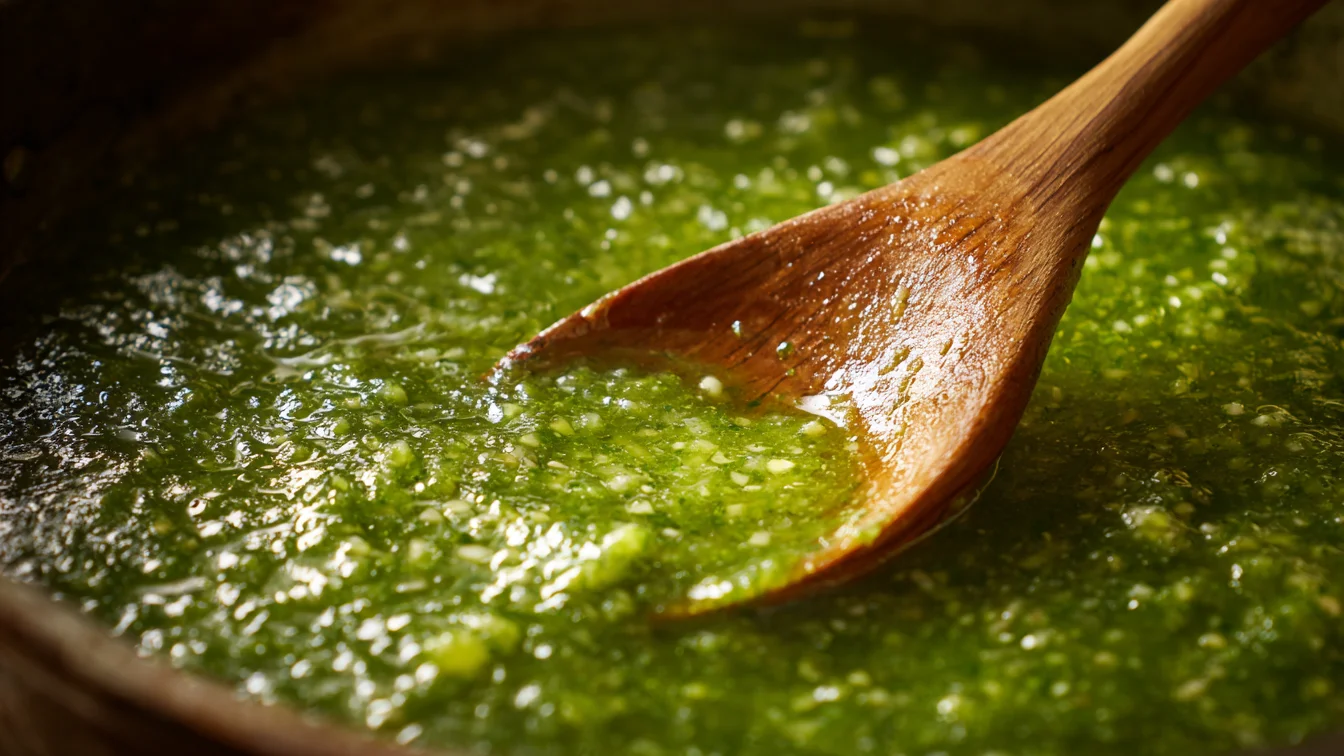 5. Achieve Smooth Texture: Blend until fully smooth. The sauce will turn a beautiful, vibrant green color.